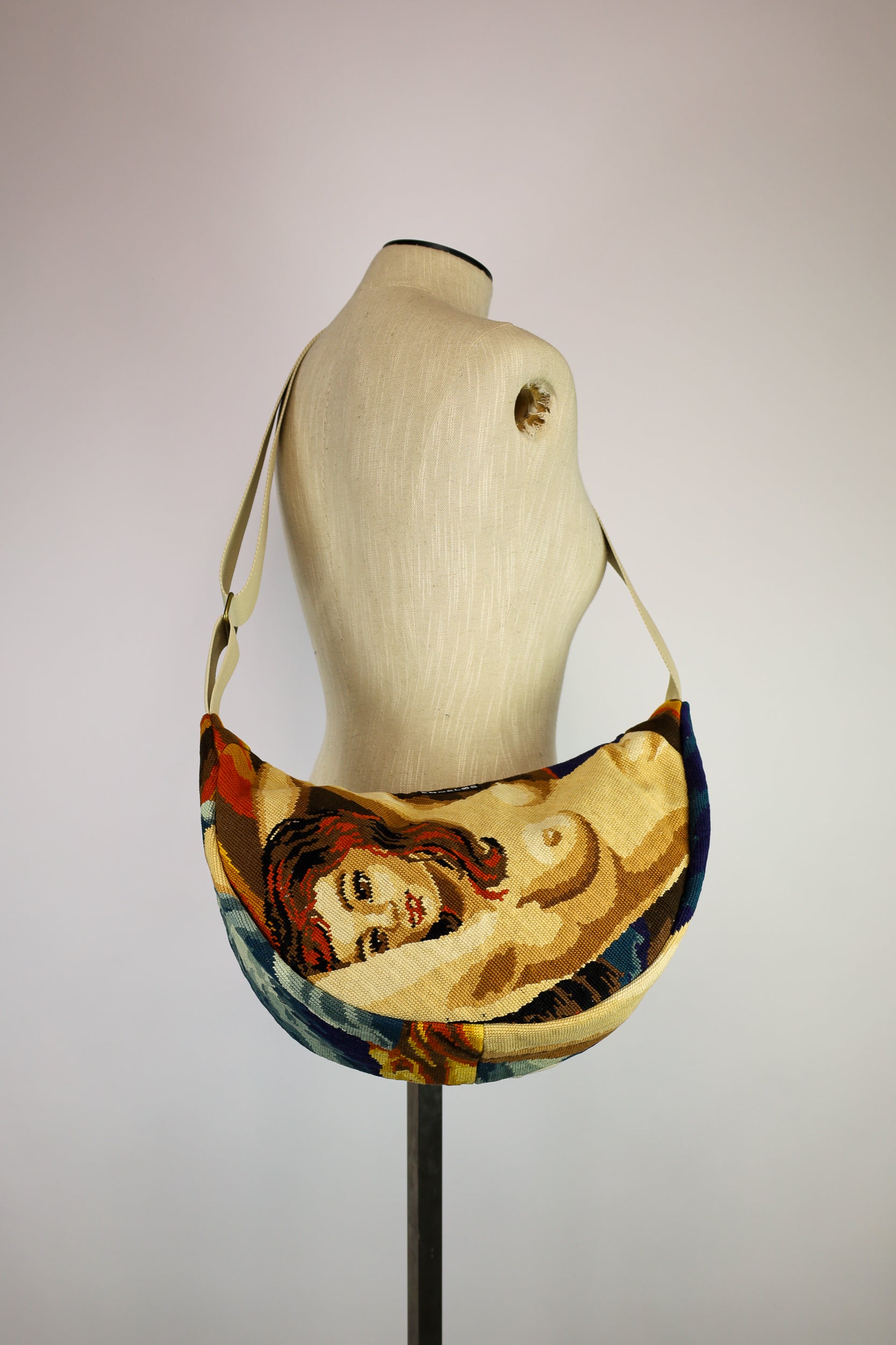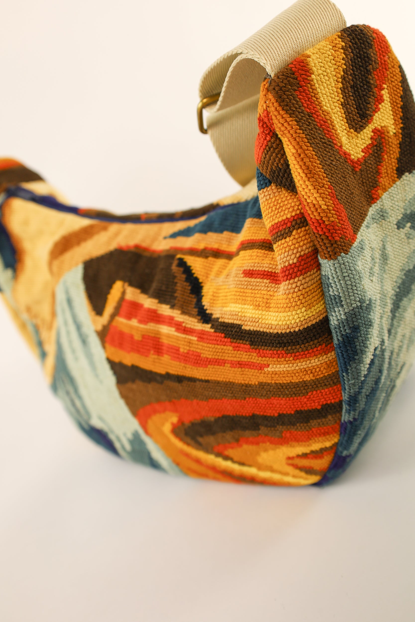 Een duurzame tas met stijl én een verhaal – perfect voor wie houdt van origineel design, vintage stoffen en verantwoord gemaakte accessoires.