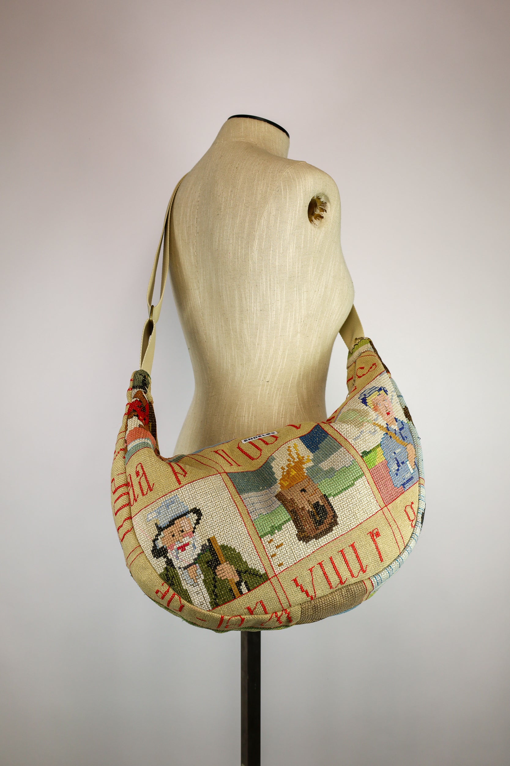Deze XL crossbody bag is een echte eyecatcher, volledig handgemaakt van oude borduurwerken in combinatie met gerecyclede materialen zoals tweedehands gordijnen, vintage meubelstoffen en restpartijen. Elke tas is daardoor uniek en heeft een geheel eigen karakter.