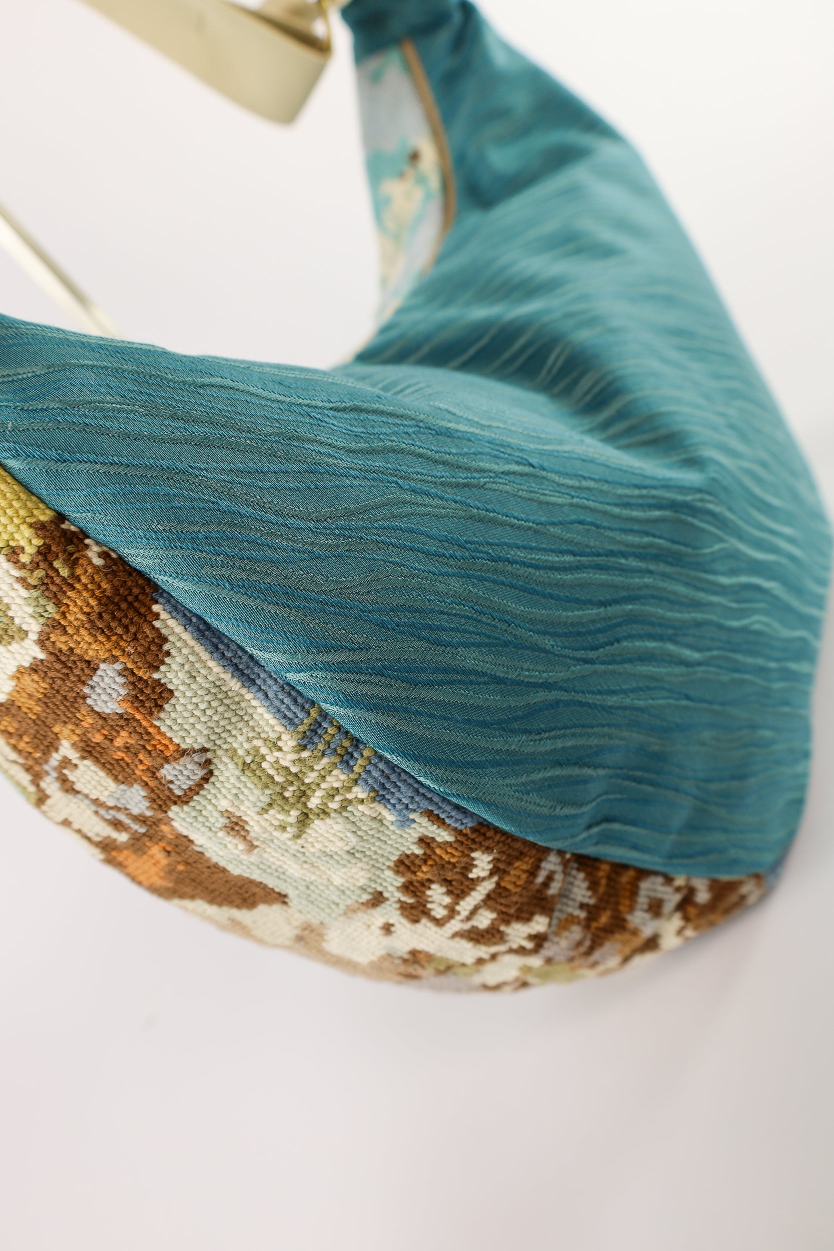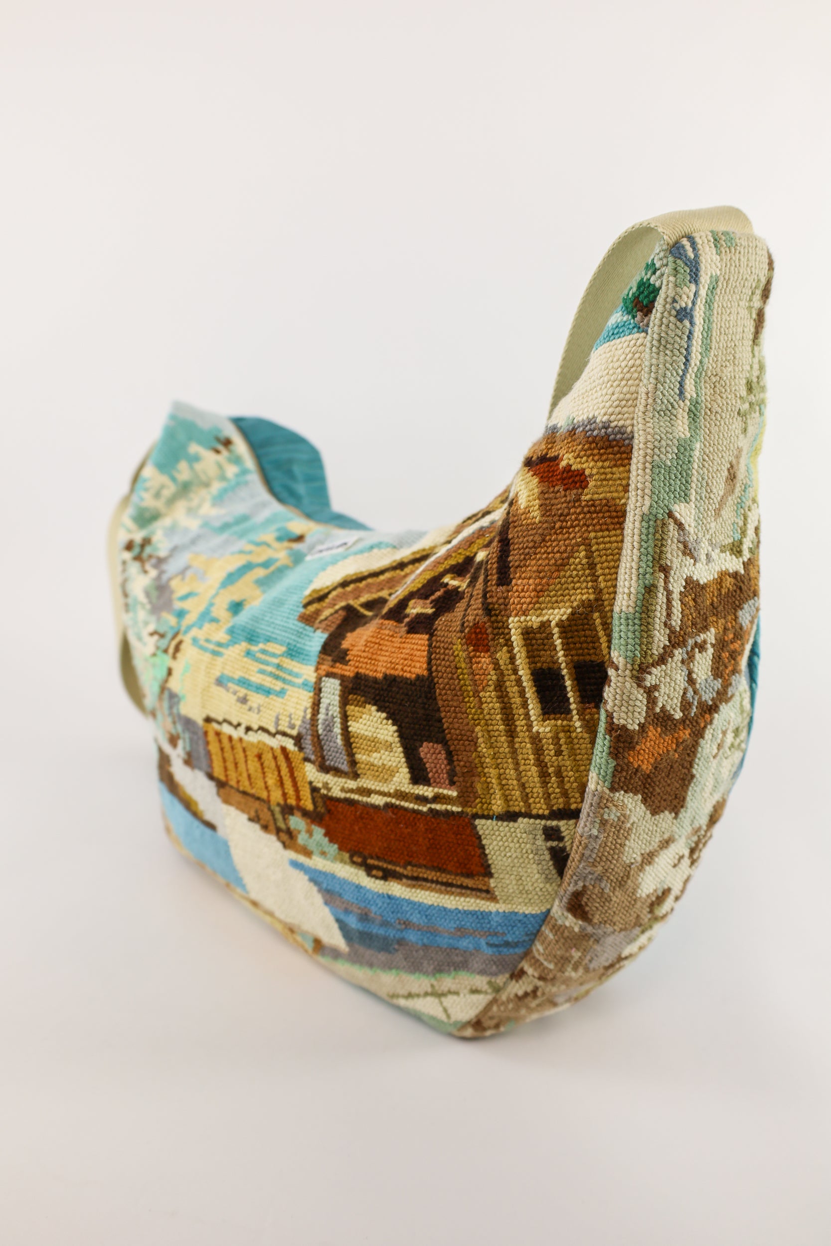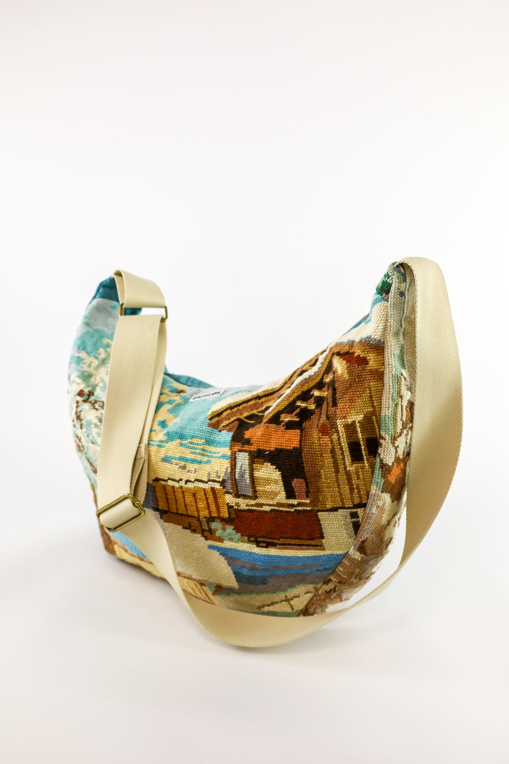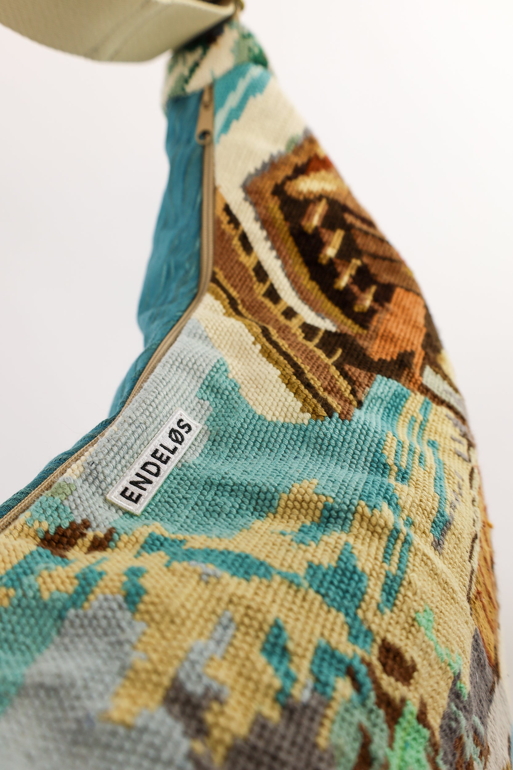 Deze XL crossbody bag is een echte eyecatcher, volledig handgemaakt van oude borduurwerken in combinatie met gerecyclede materialen zoals tweedehands gordijnen, vintage meubelstoffen en restpartijen. Elke tas is daardoor uniek en heeft een geheel eigen karakter.