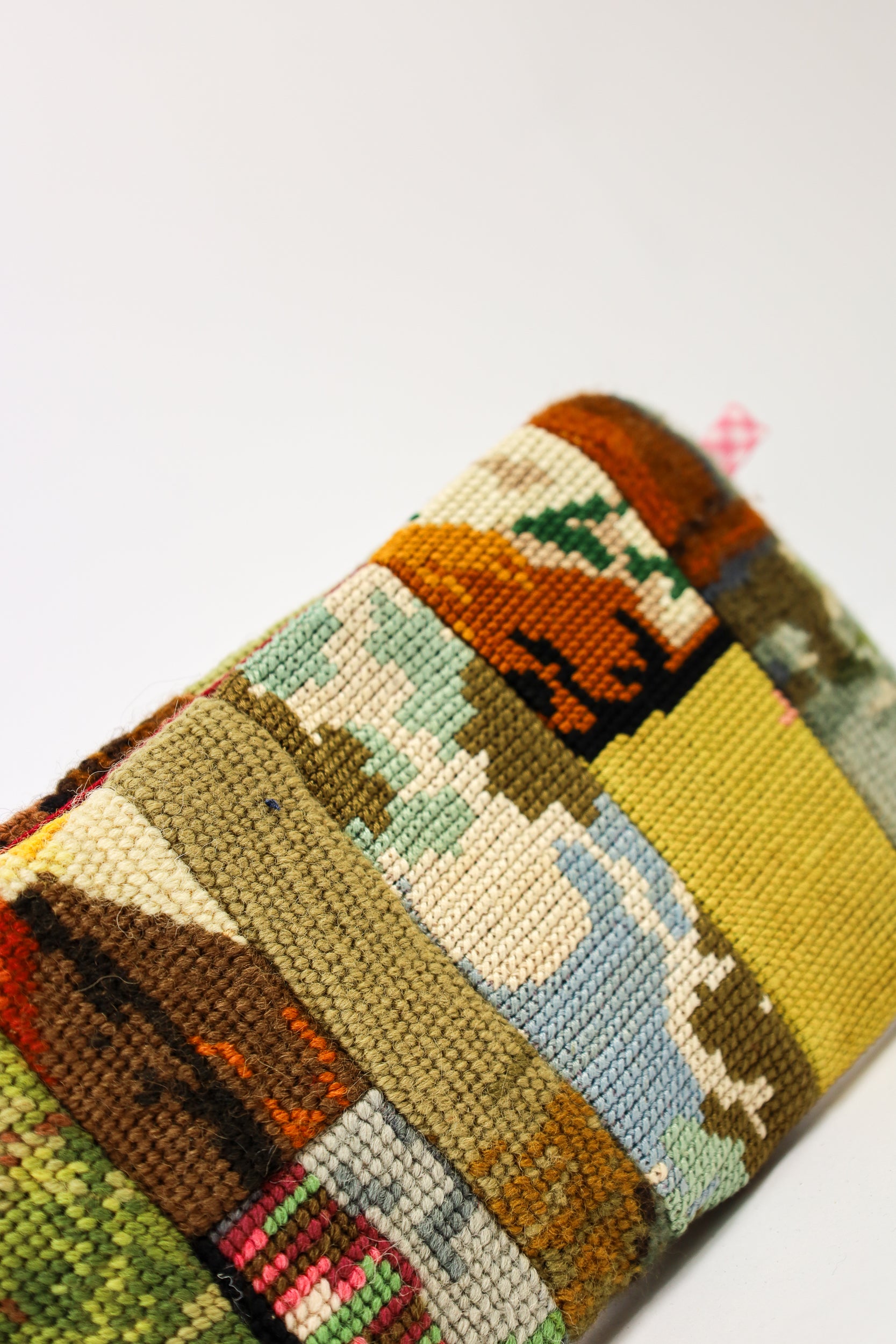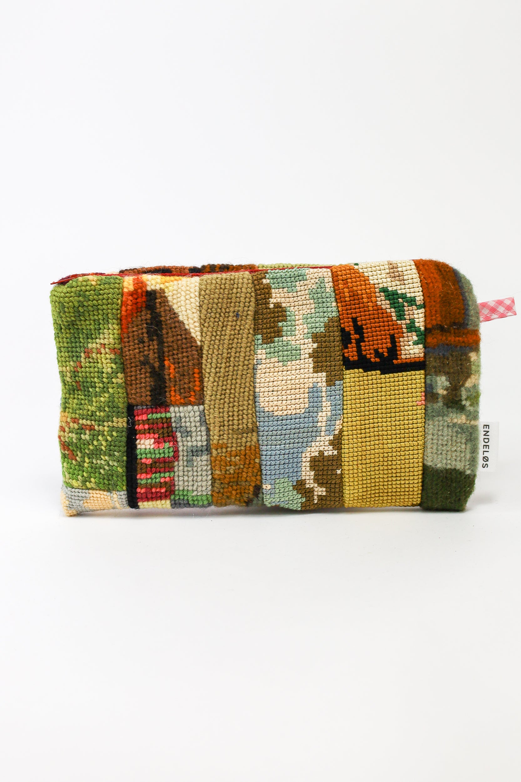 Dit handgemaakte etui is gemaakt van restanten borduurwerk en borduurwerken die te klein zijn voor andere toepassingen. Zo krijgen bijzondere materialen een tweede leven. Alles aan dit etui is hergebruikt, van de rits tot het koordje, wat het een duurzaam en uniek accessoire maakt.