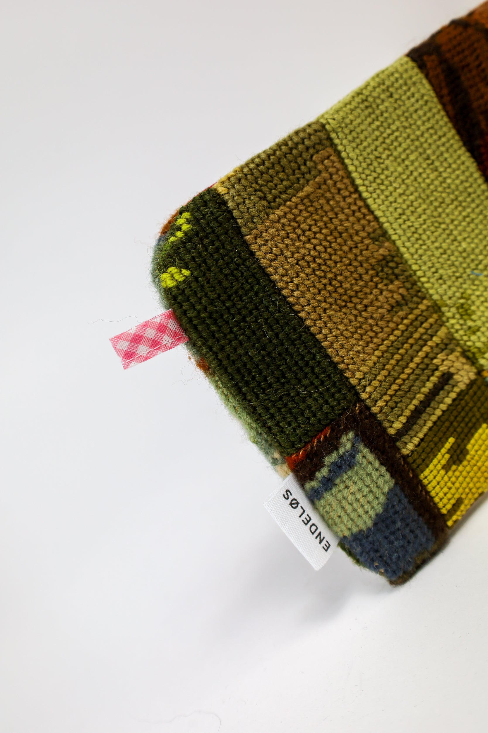 Door de structuur van het borduurwerk kan het etui licht scheef trekken. Dit is een eigenschap van het materiaal en geen gevolg van de naaitechniek. Elk etui is daardoor uniek en draagt zichtbaar het karakter van handgemaakt textiel.