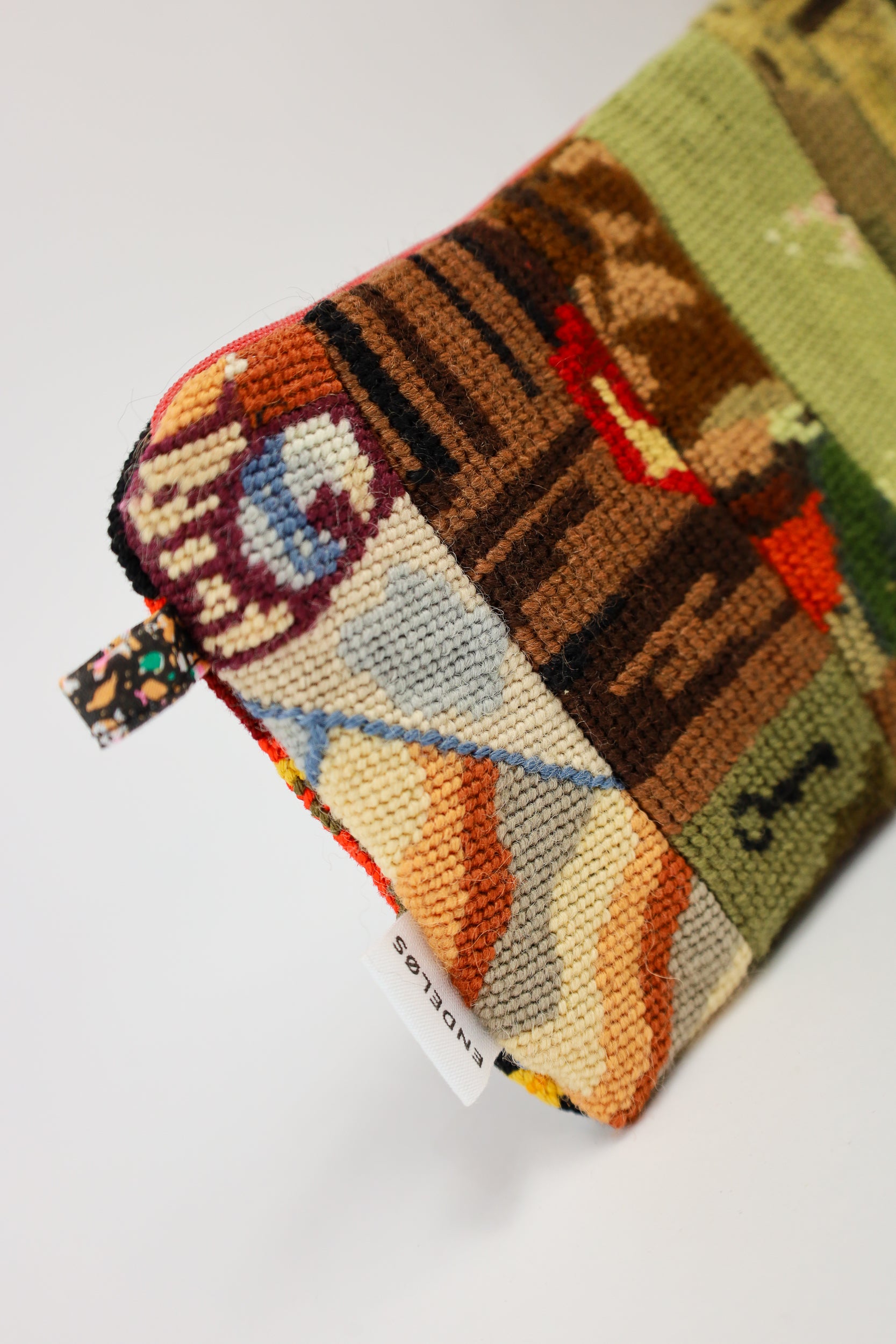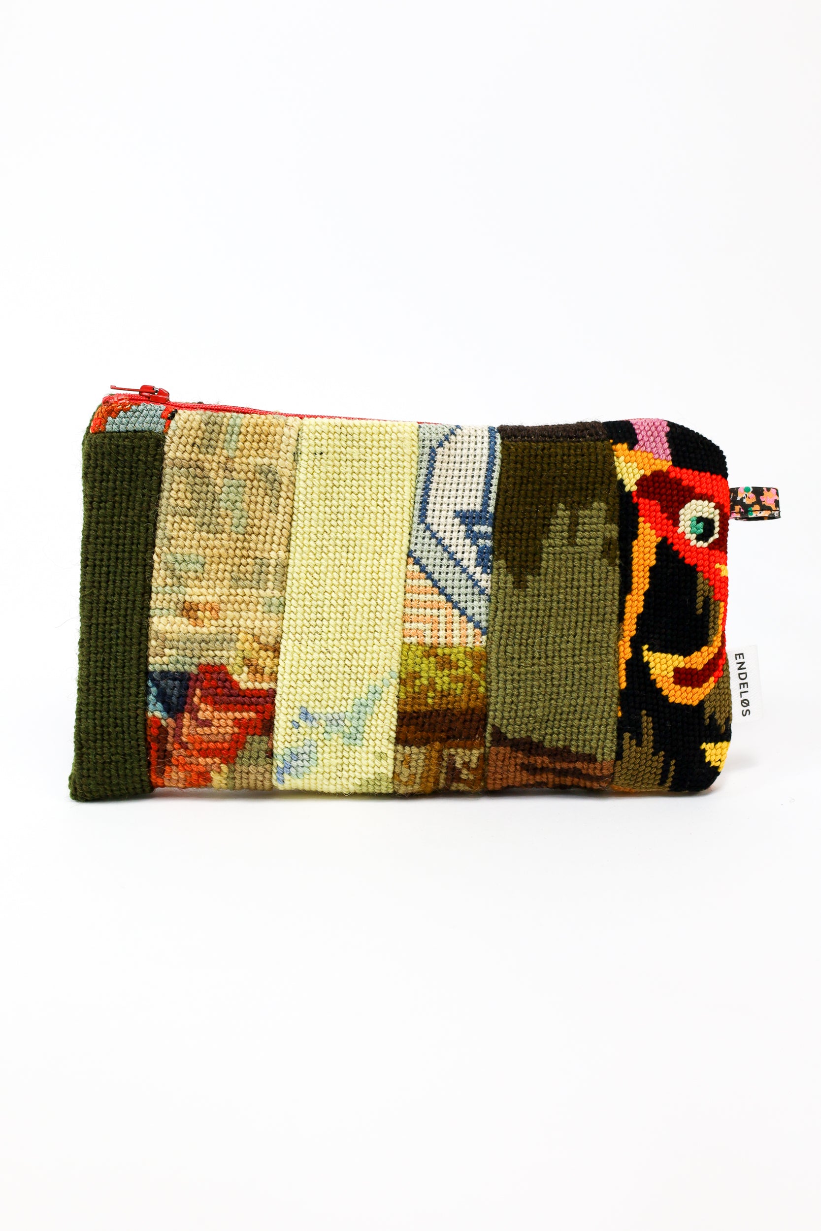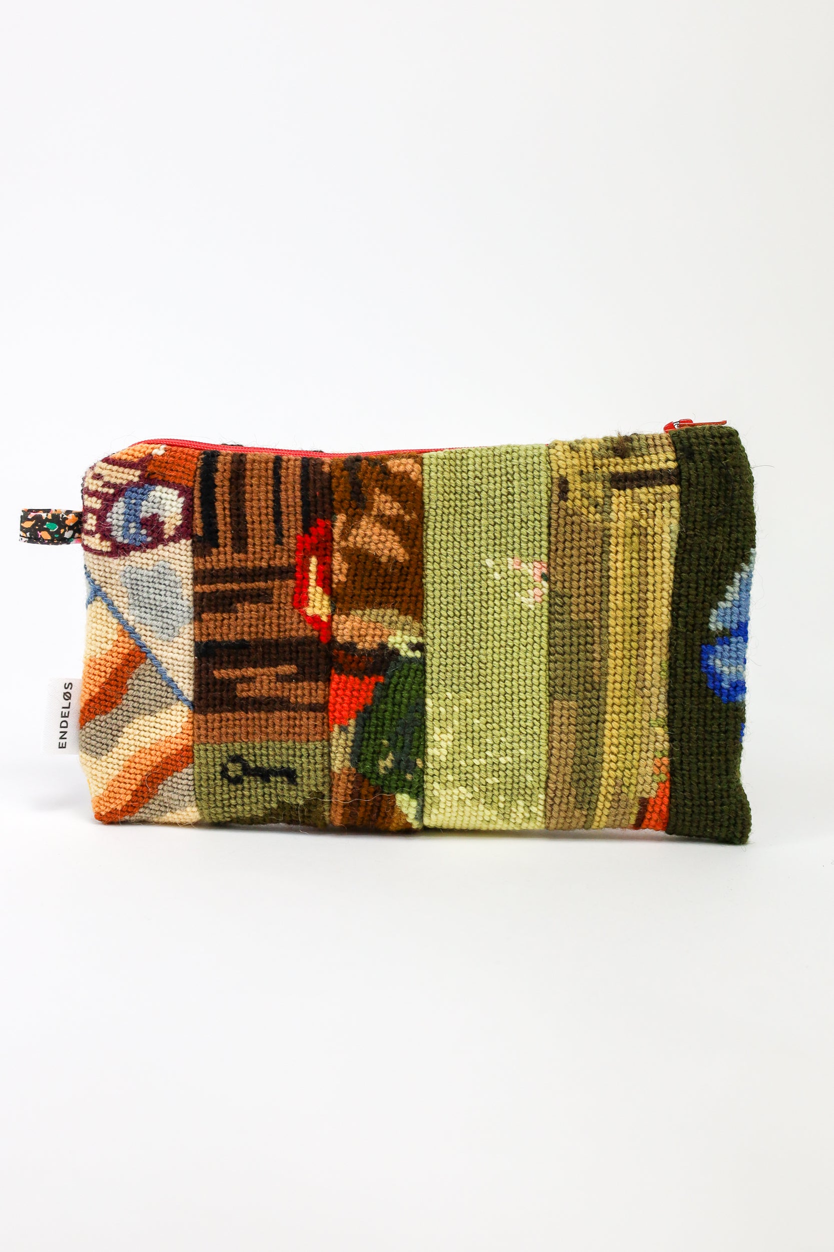 Dit handgemaakte etui is gemaakt van restanten borduurwerk en borduurwerken die te klein zijn voor andere toepassingen. Zo krijgen bijzondere materialen een tweede leven. Alles aan dit etui is hergebruikt, van de rits tot het koordje, wat het een duurzaam en uniek accessoire maakt.