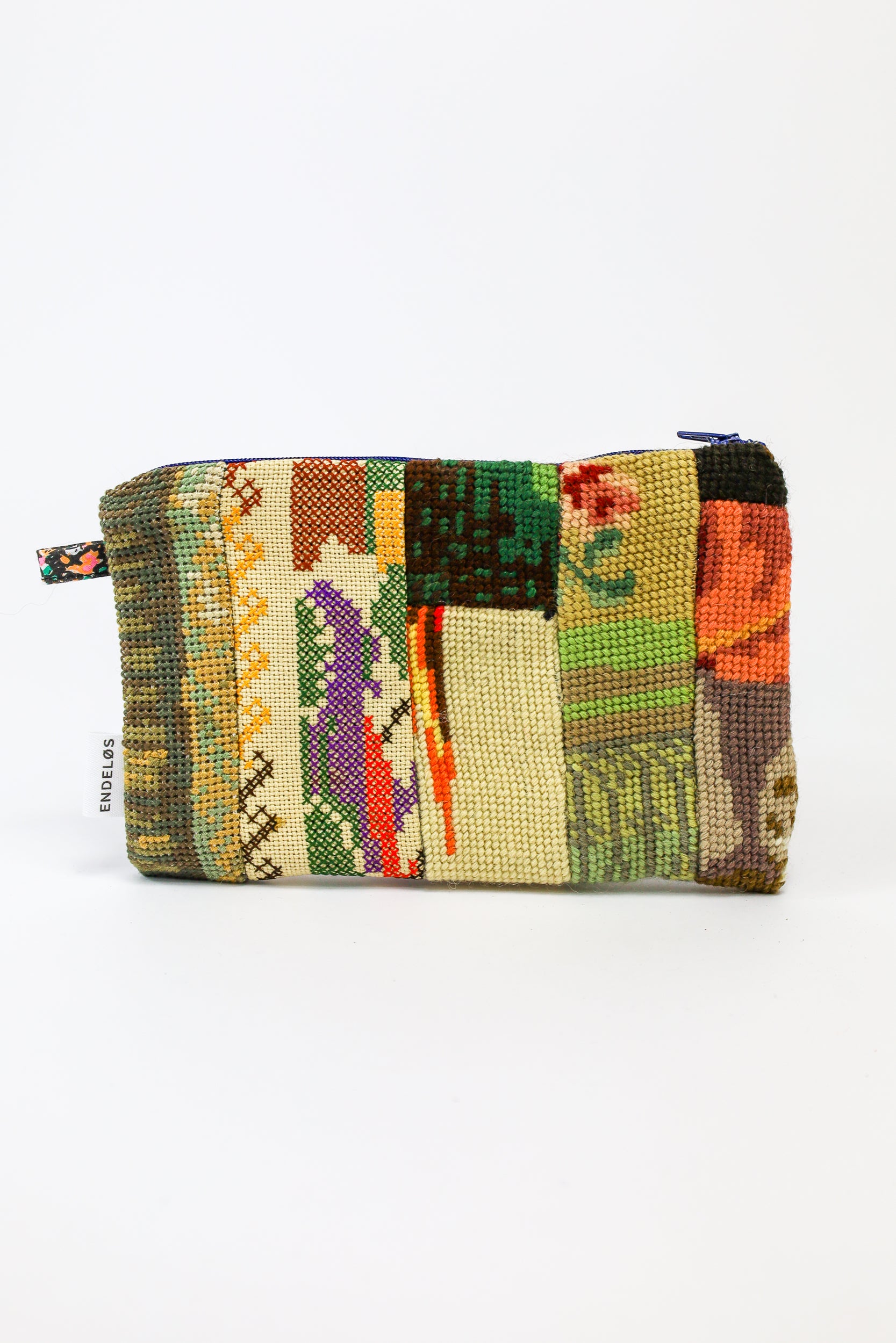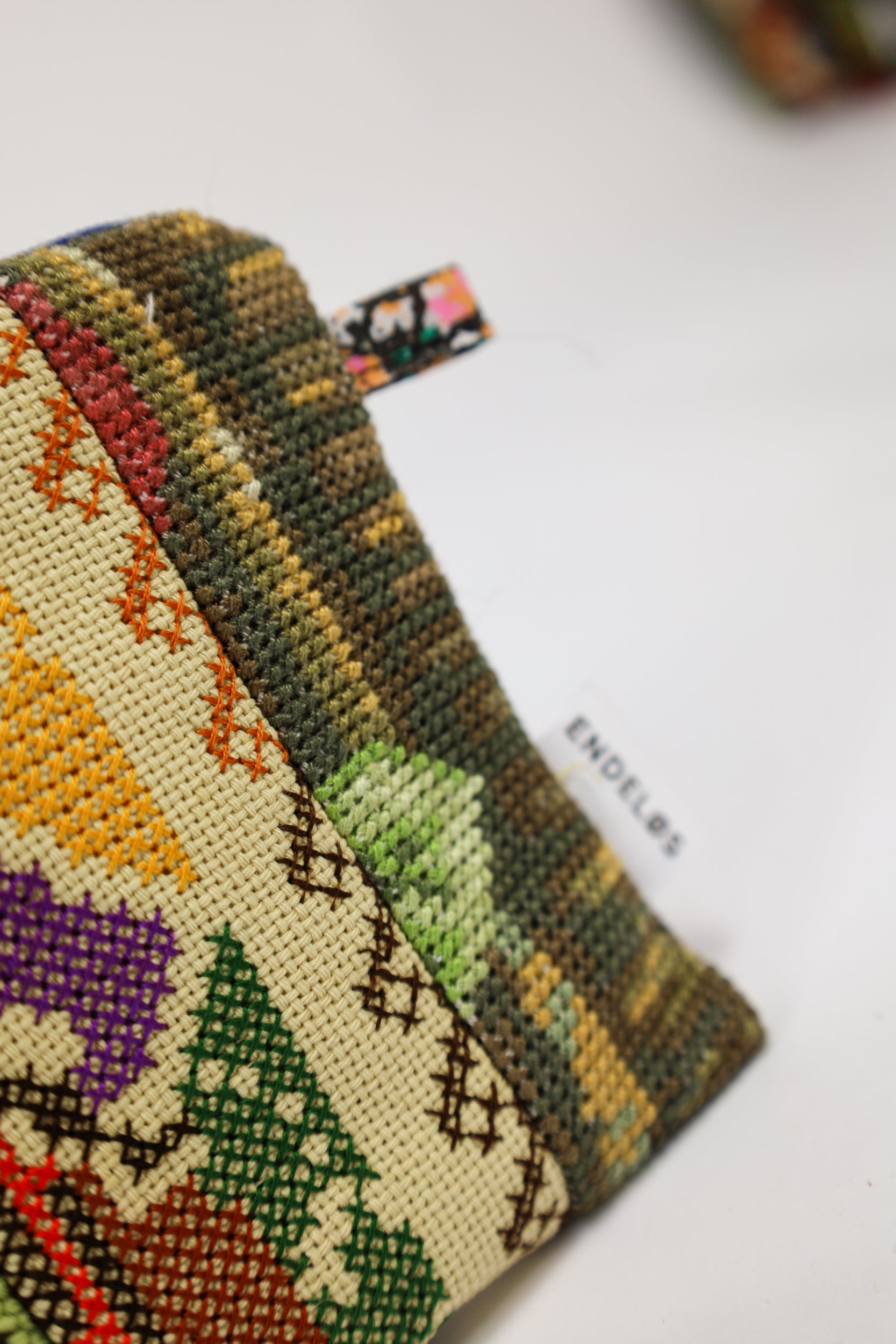 Dit handgemaakte etui is gemaakt van restanten borduurwerk en borduurwerken die te klein zijn voor andere toepassingen. Zo krijgen bijzondere materialen een tweede leven. Alles aan dit etui is hergebruikt, van de rits tot het koordje, wat het een duurzaam en uniek accessoire maakt.