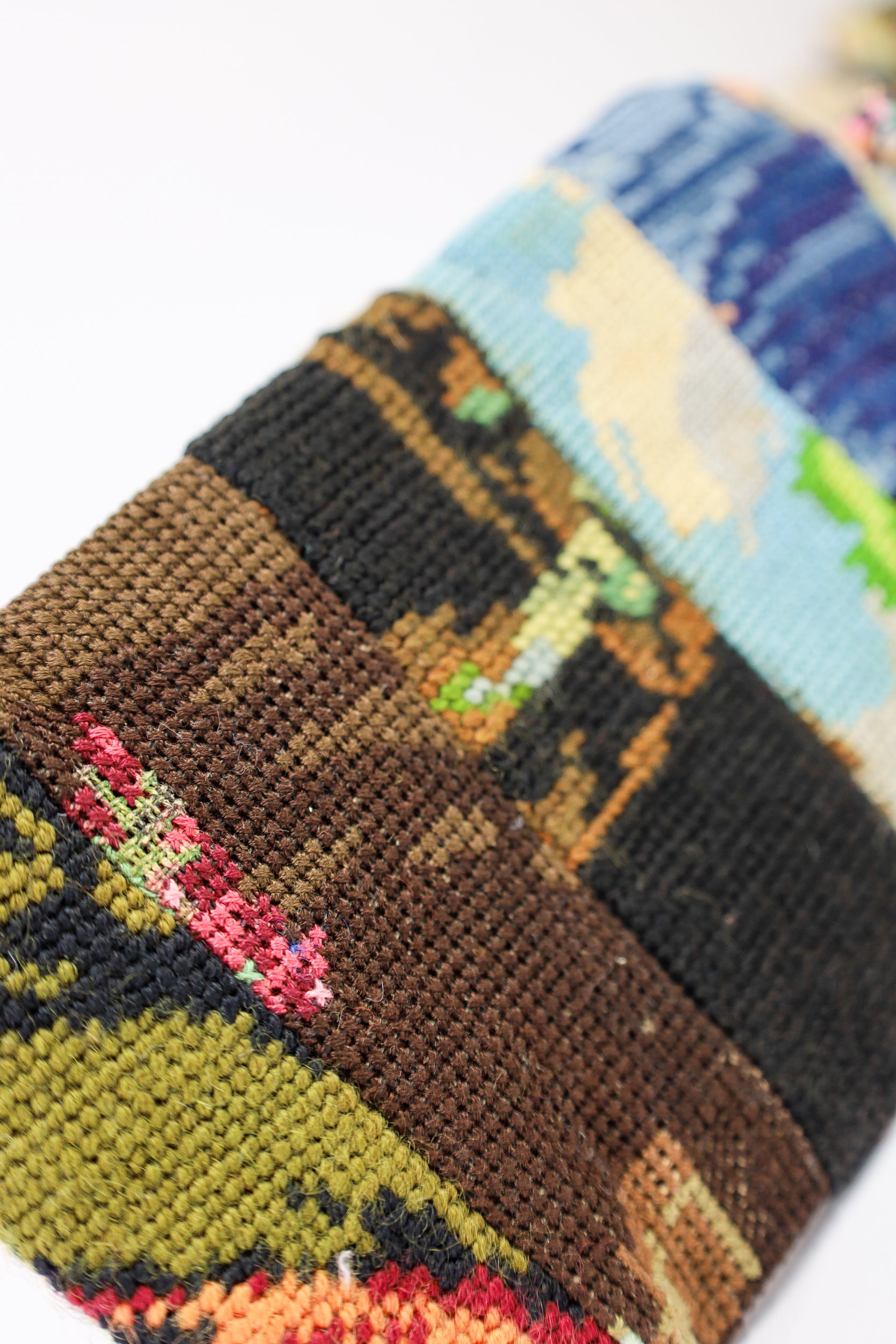 Dit handgemaakte etui is gemaakt van restanten borduurwerk en borduurwerken die te klein zijn voor andere toepassingen. Zo krijgen bijzondere materialen een tweede leven. Alles aan dit etui is hergebruikt, van de rits tot het koordje, wat het een duurzaam en uniek accessoire maakt.