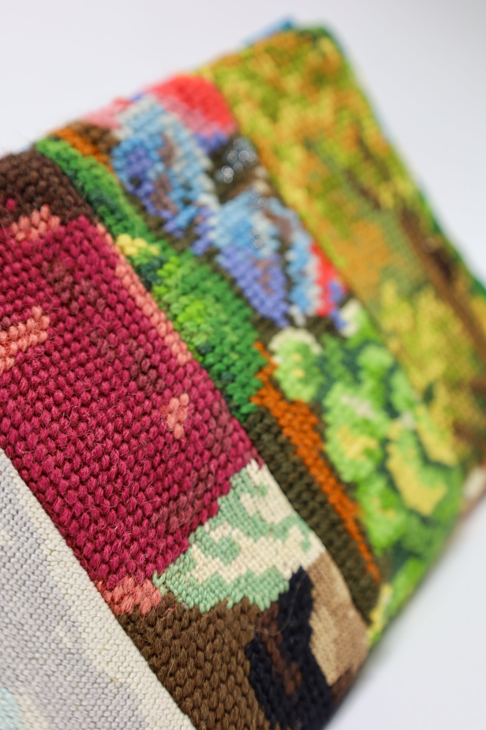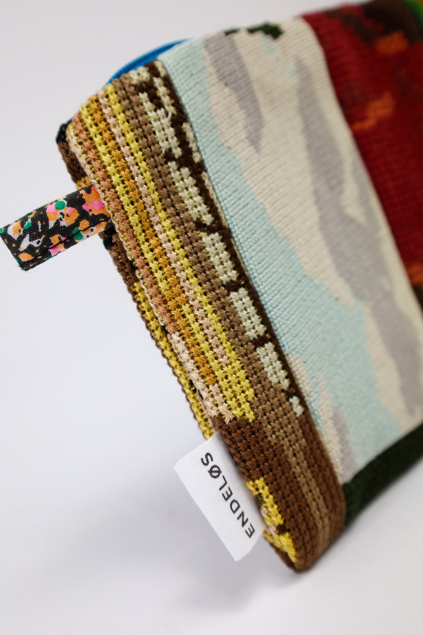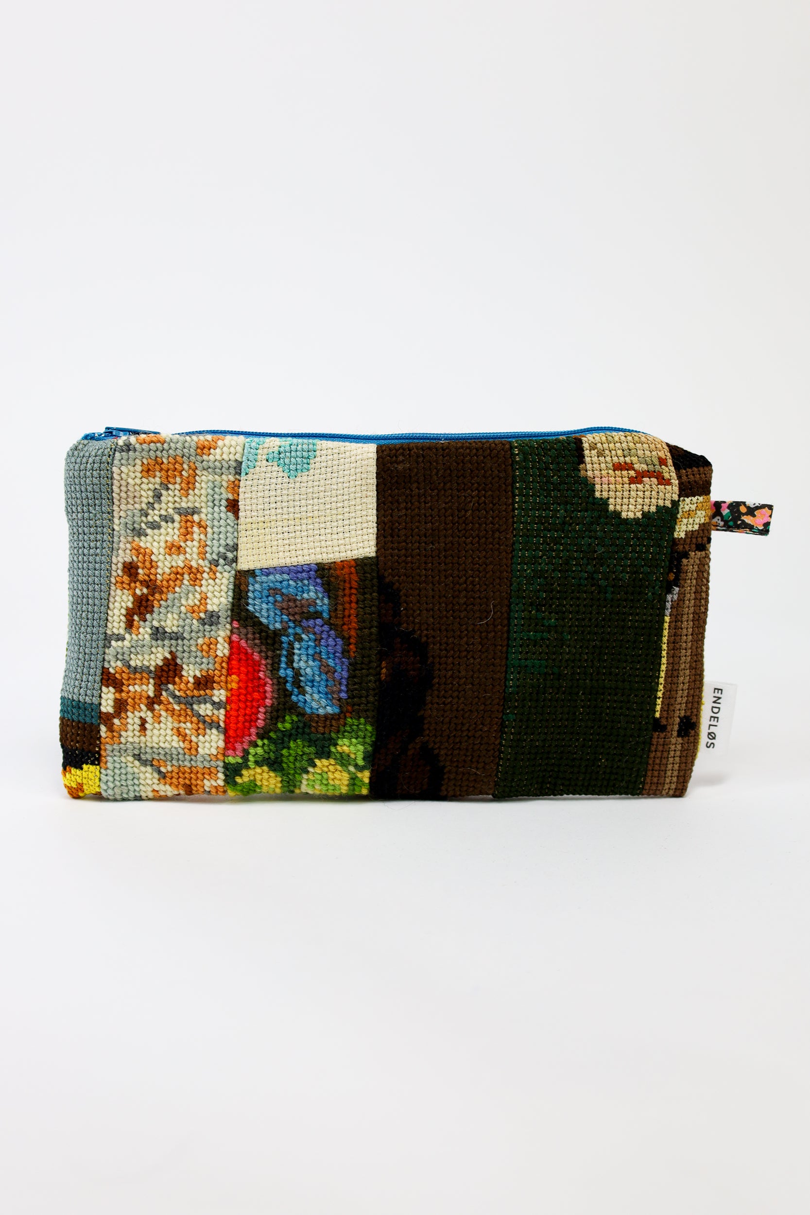 Dit handgemaakte etui is gemaakt van restanten borduurwerk en borduurwerken die te klein zijn voor andere toepassingen. Zo krijgen bijzondere materialen een tweede leven. Alles aan dit etui is hergebruikt, van de rits tot het koordje, wat het een duurzaam en uniek accessoire maakt.