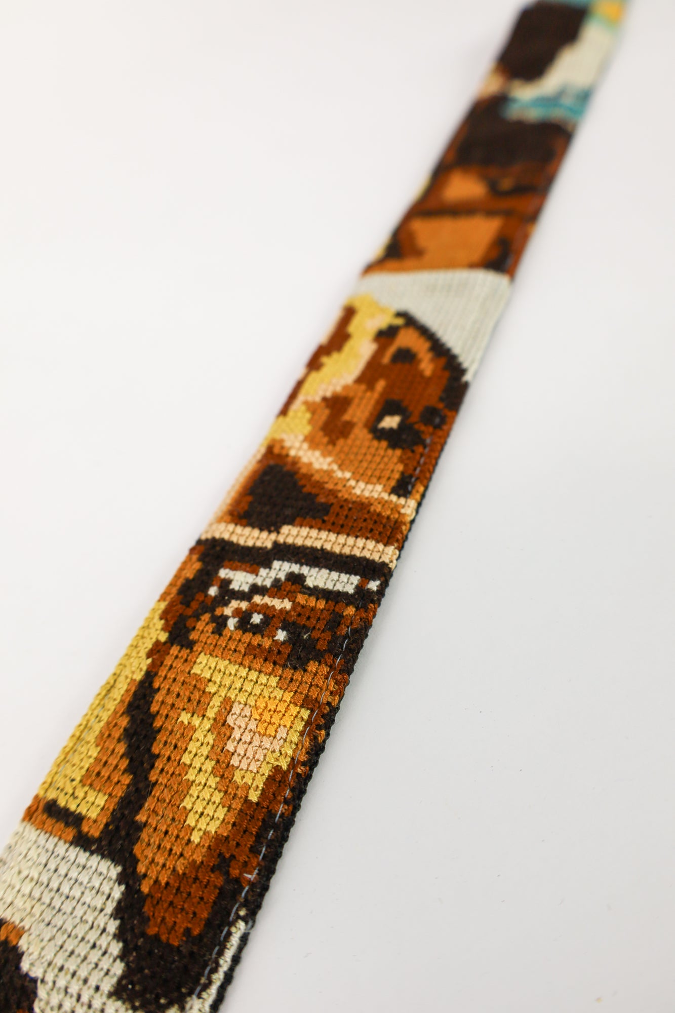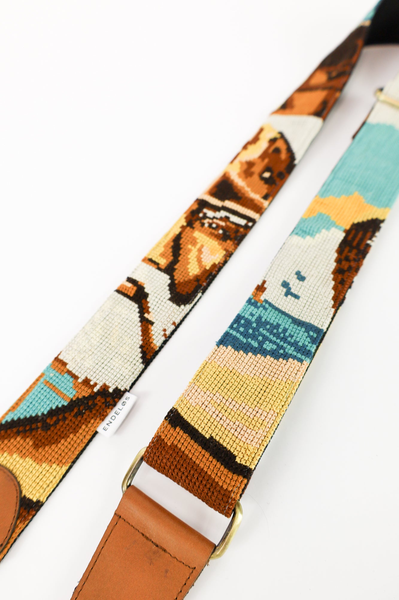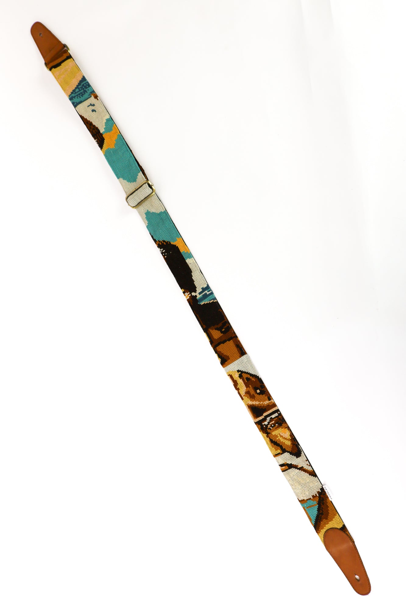 Deze gitaarband is gemaakt van een prachtig kleurrijk geborduurd schilderij, en het kunstwerk is in zijn volle glorie terug te zien in de hele band. Of je nu je gitaar wilt upgraden of een uniek statement wilt maken tijdens een optreden, deze band combineert stijl en functionaliteit op een bijzondere manier. Dankzij het gebruik van hergebruikte materialen is de gitaarband niet alleen duurzaam, maar ook een karaktervolle en unieke toevoeging aan je instrument. Geef je gitaar een persoonlijke, kunstzinnige uitstraling met dit bijzondere en stijlvolle accessoire.