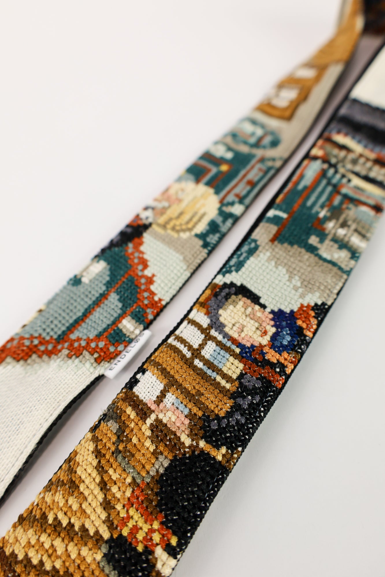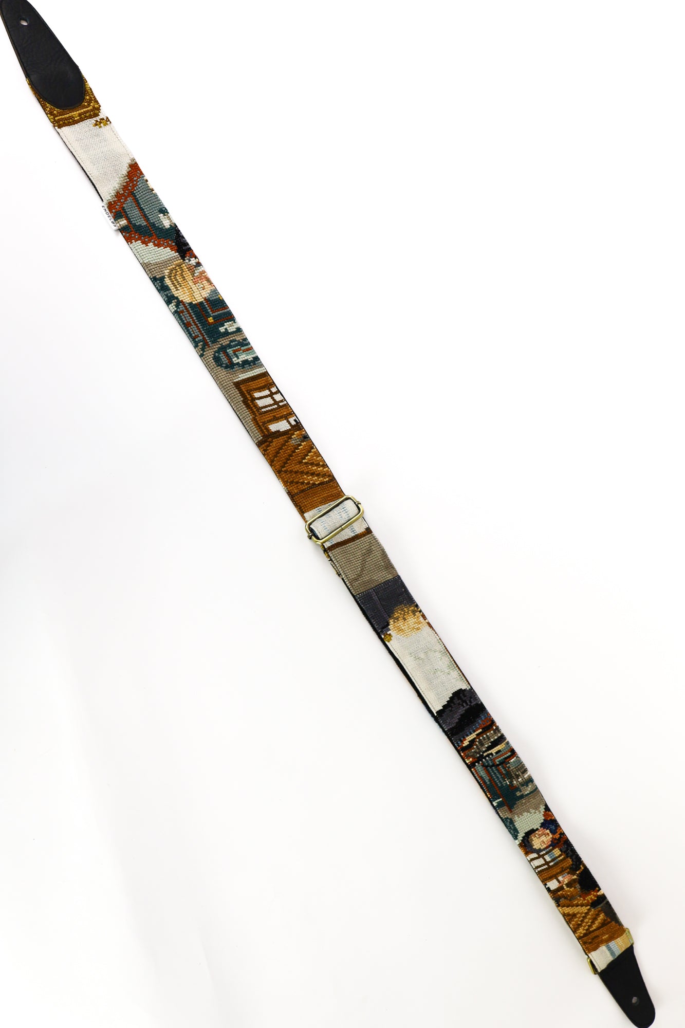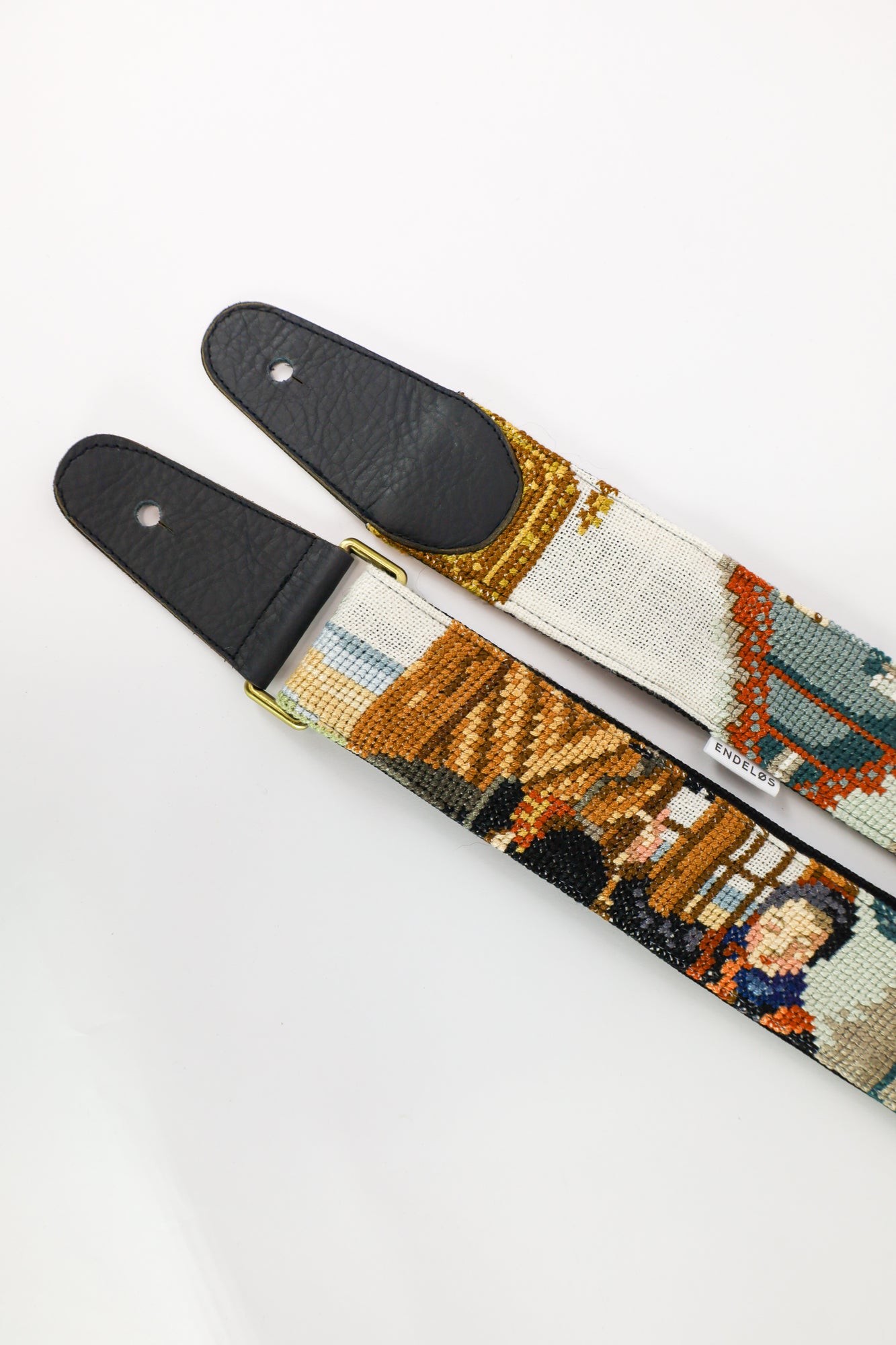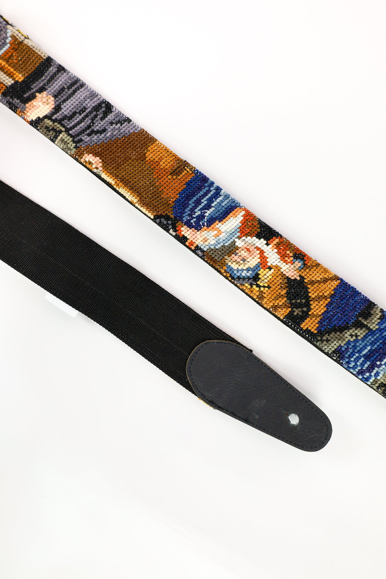Deze gitaarband is gemaakt van een prachtig kleurrijk geborduurd schilderij, en het kunstwerk is in zijn volle glorie terug te zien in de hele band. Of je nu je gitaar wilt upgraden of een uniek statement wilt maken tijdens een optreden, deze band combineert stijl en functionaliteit op een bijzondere manier. Dankzij het gebruik van hergebruikte materialen is de gitaarband niet alleen duurzaam, maar ook een karaktervolle en unieke toevoeging aan je instrument. Geef je gitaar een persoonlijke, kunstzinnige uitstraling met dit bijzondere en stijlvolle accessoire.