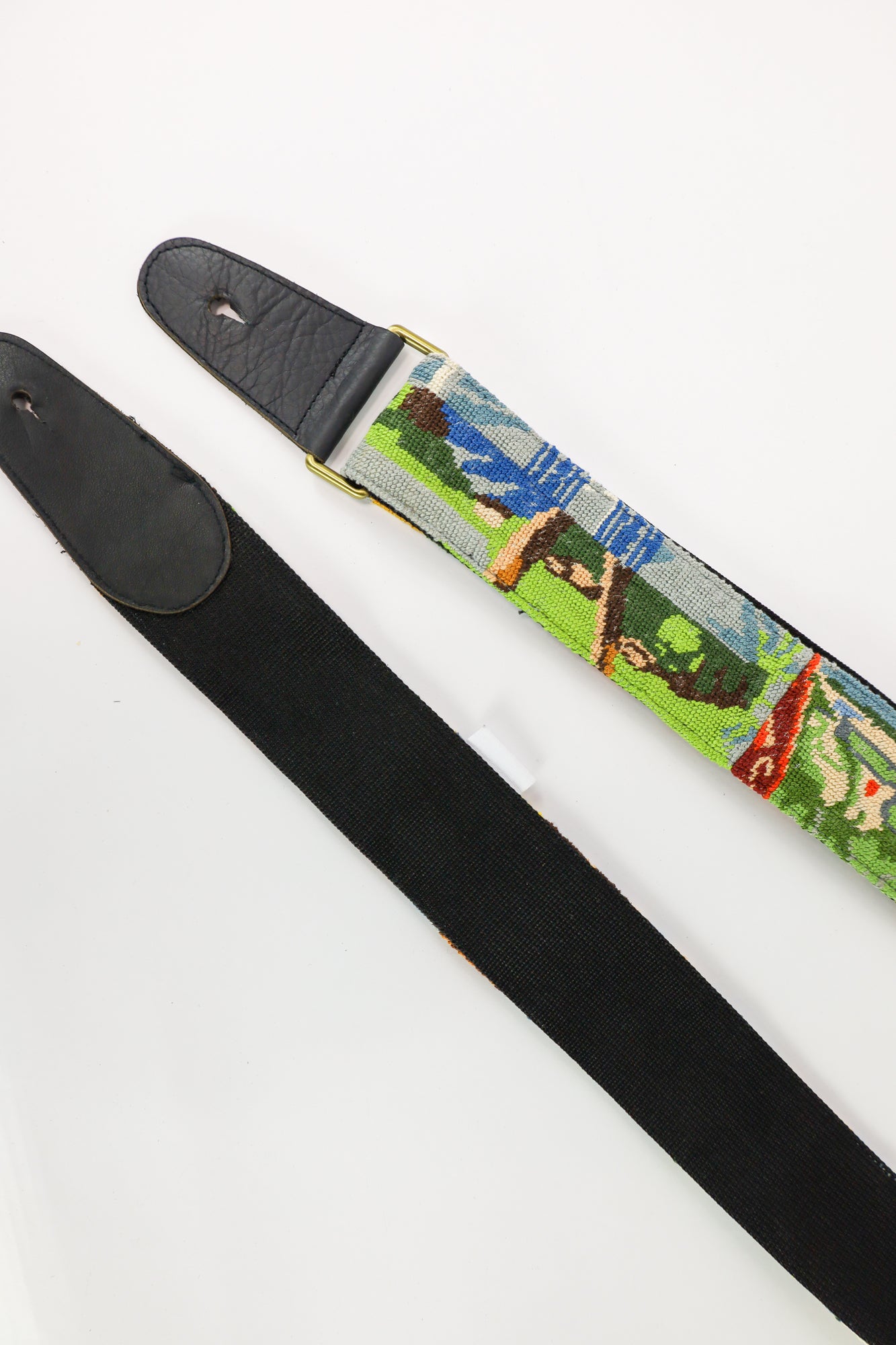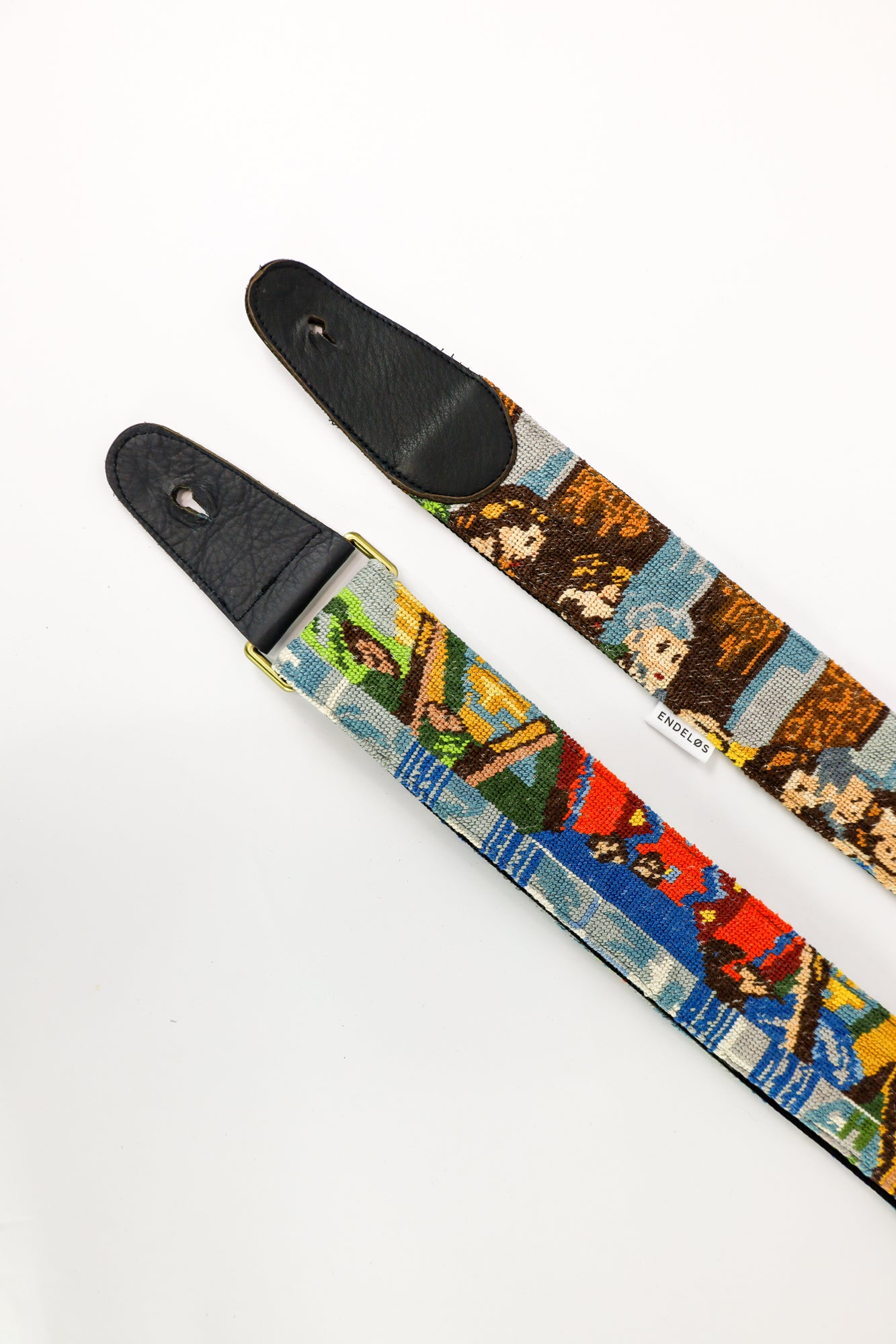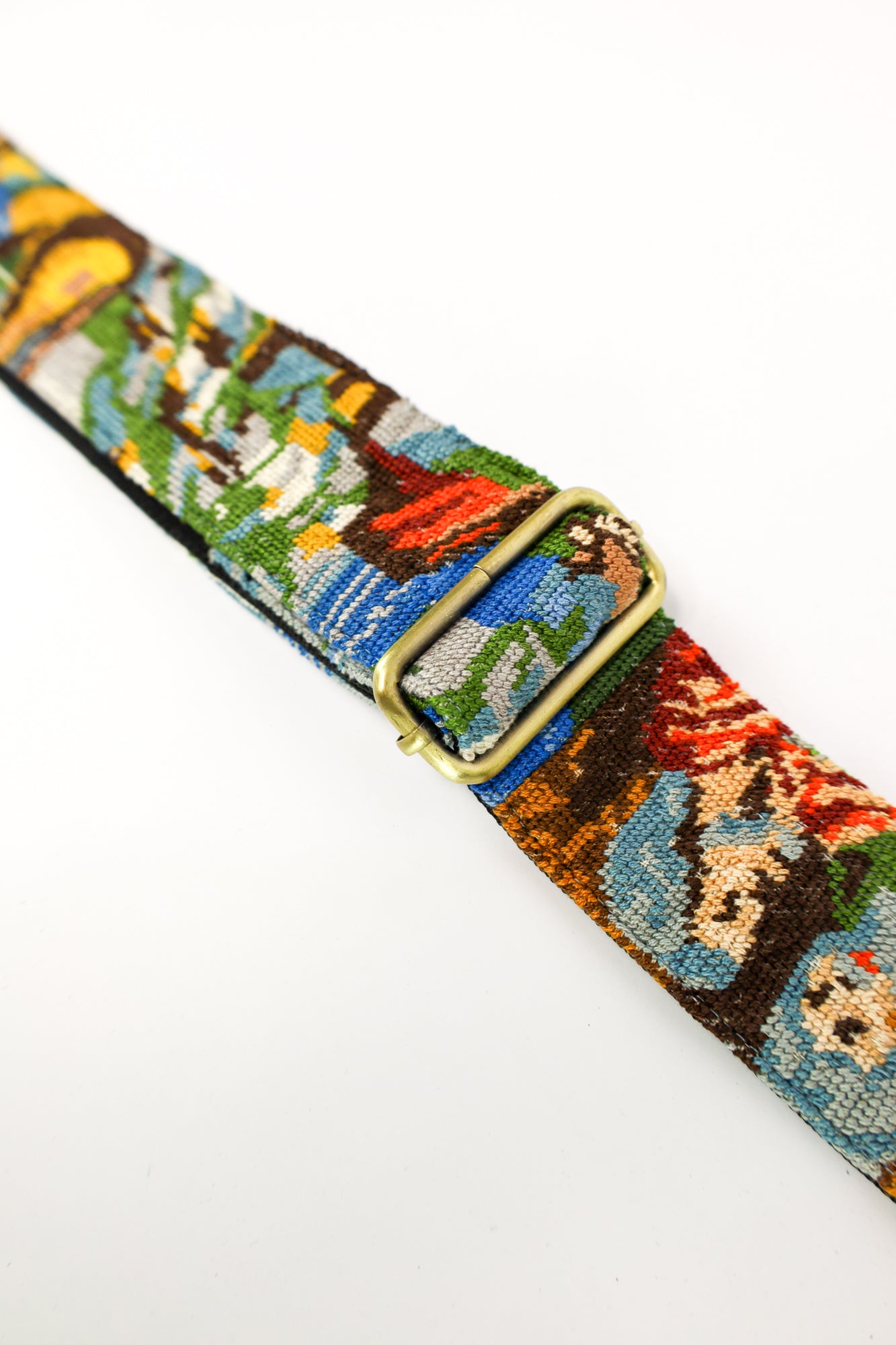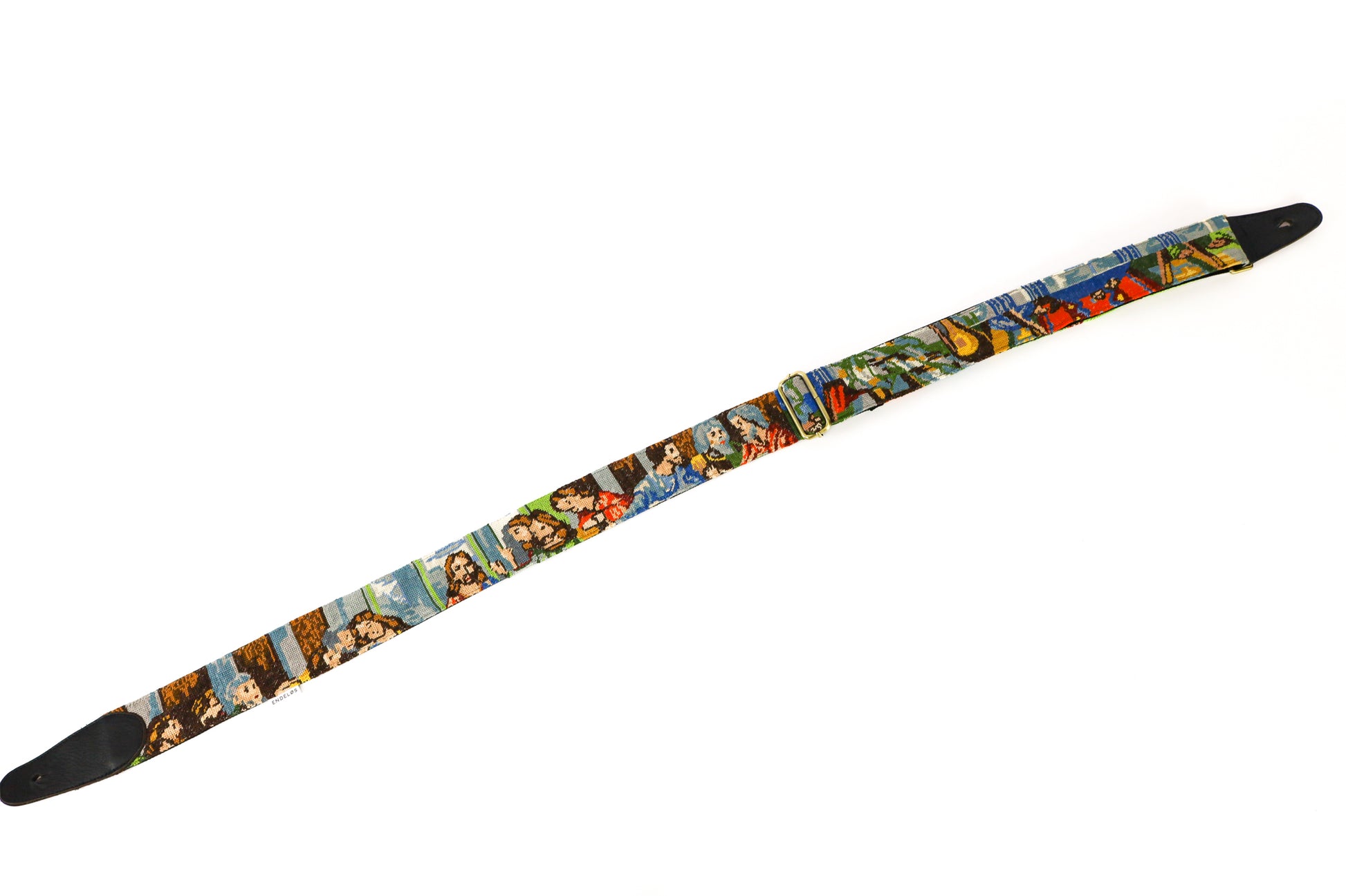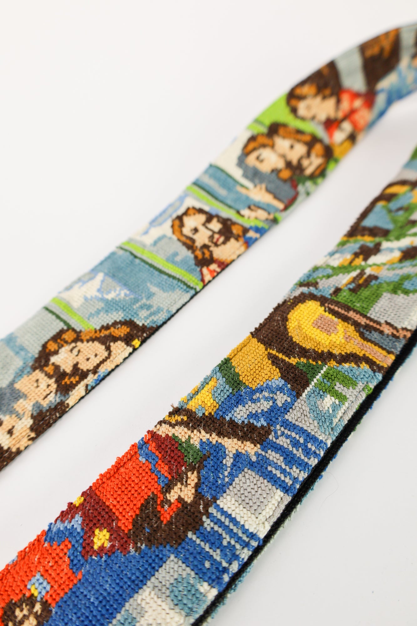 Deze gitaarband is gemaakt van een prachtig kleurrijk geborduurd schilderij, en het kunstwerk is in zijn volle glorie terug te zien in de hele band. Of je nu je gitaar wilt upgraden of een uniek statement wilt maken tijdens een optreden, deze band combineert stijl en functionaliteit op een bijzondere manier. Dankzij het gebruik van hergebruikte materialen is de gitaarband niet alleen duurzaam, maar ook een karaktervolle en unieke toevoeging aan je instrument. Geef je gitaar een persoonlijke, kunstzinnige uitstraling met dit bijzondere en stijlvolle accessoire.
