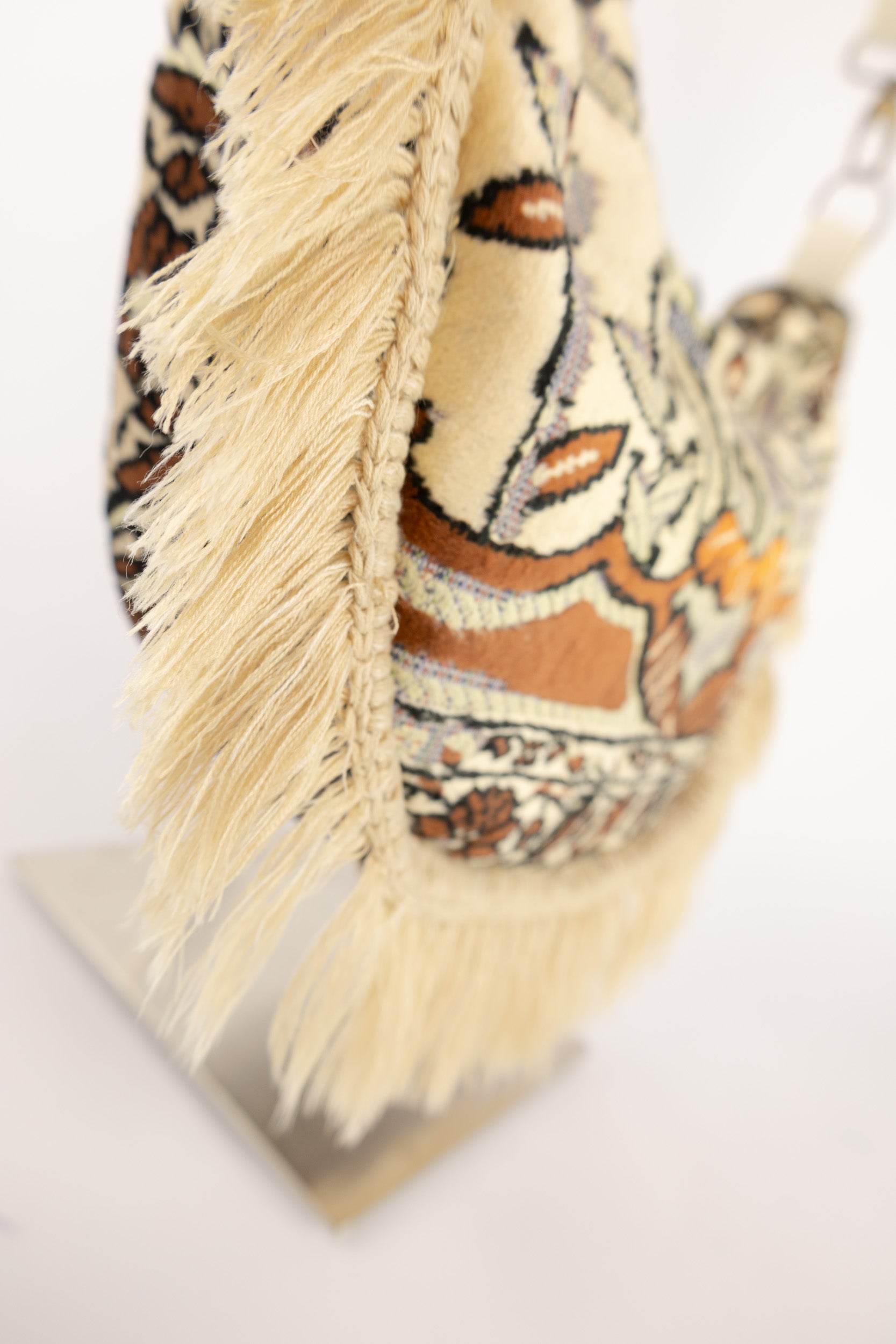 Het rijke patroon van het vintage tapijt geeft de tas een artistieke, bijna schilderachtige uitstraling. Perfect voor liefhebbers van unieke vintage tapijt tassen, duurzame mode en accessoires met persoonlijkheid.