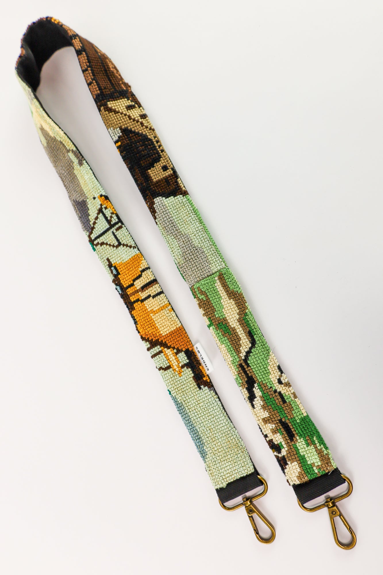 Deze strap is gemaakt van een prachtig kleurrijk geborduurd schilderij, en dit kunstwerk is prachtig terug te zien in de hele strap. Of je nu je tas, telefoon of camera wilt verfraaien, deze strap biedt een ideale combinatie van stijl en functionaliteit. Dankzij het gebruik van hergebruikte materialen is de strap niet alleen duurzaam, maar ook een unieke en karaktervolle toevoeging aan je accessoires. Geef je items een persoonlijke, kunstzinnige charme met dit bijzondere en stijlvolle accessoire.