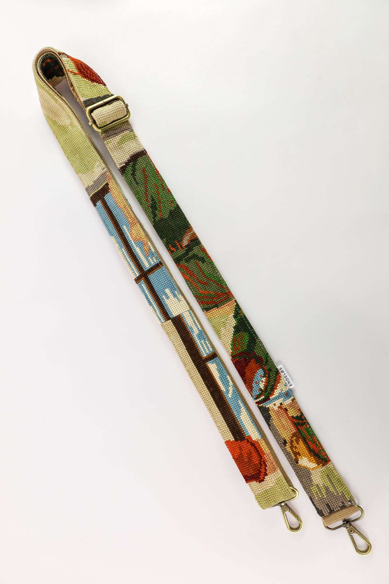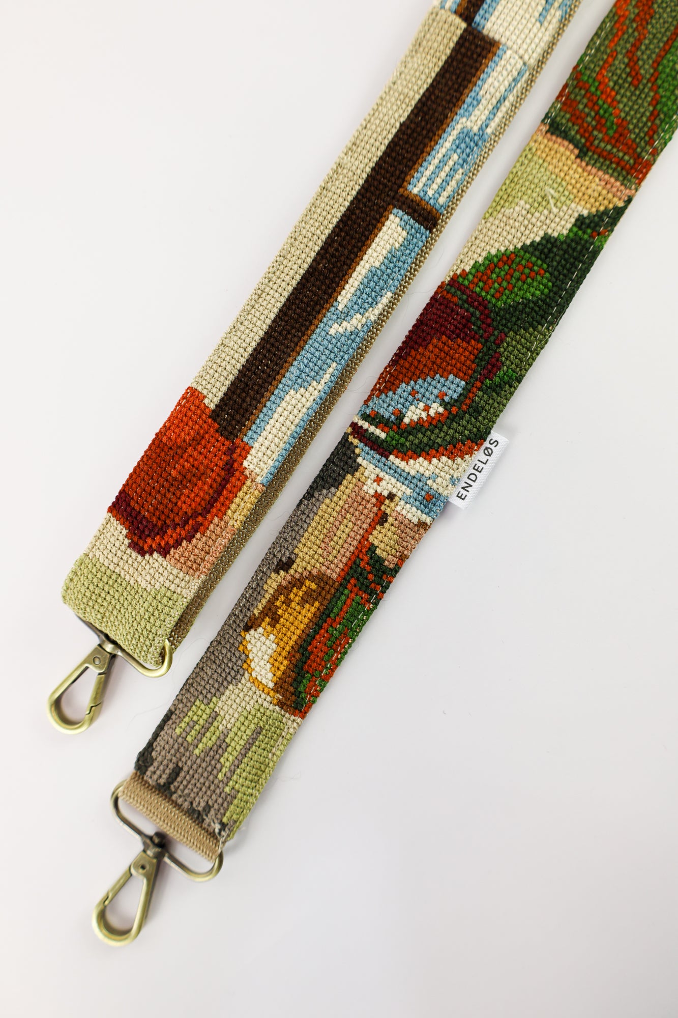 Deze strap is gemaakt van een prachtig kleurrijk geborduurd schilderij, en dit kunstwerk is prachtig terug te zien in de hele strap. Of je nu je tas, telefoon of camera wilt verfraaien, deze strap biedt een ideale combinatie van stijl en functionaliteit. Dankzij het gebruik van hergebruikte materialen is de strap niet alleen duurzaam, maar ook een unieke en karaktervolle toevoeging aan je accessoires. Geef je items een persoonlijke, kunstzinnige charme met dit bijzondere en stijlvolle accessoire.
