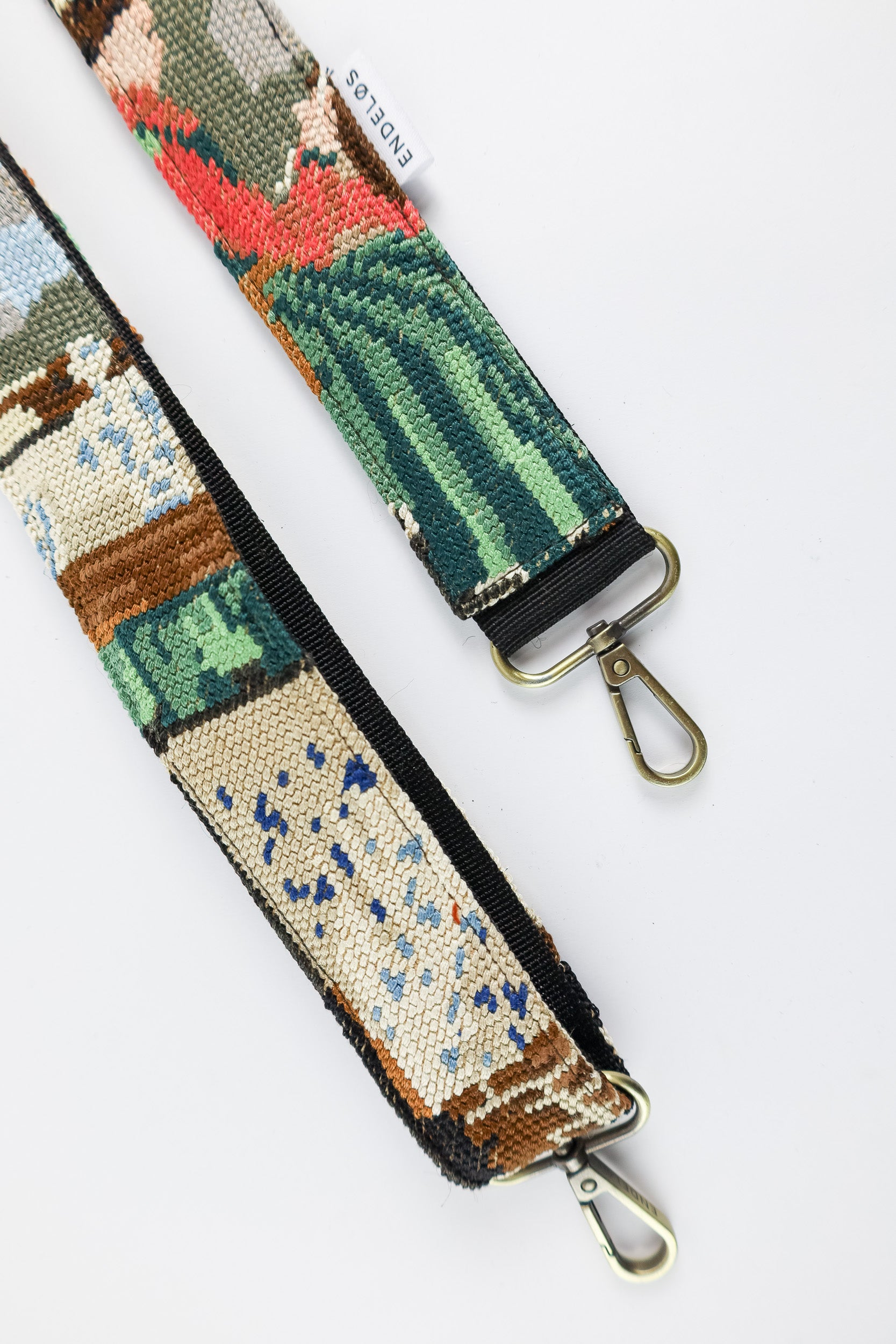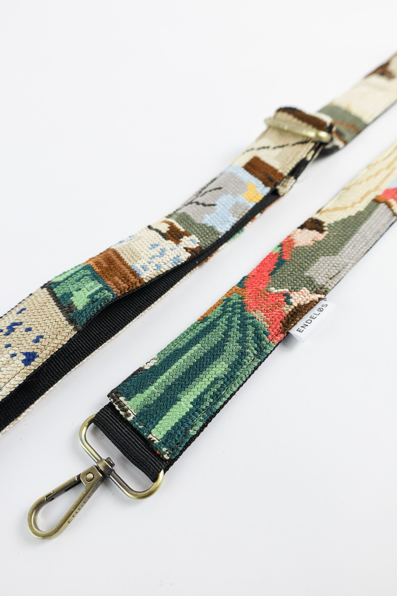 Deze strap is gemaakt van een prachtig kleurrijk geborduurd schilderij, en dit kunstwerk is prachtig terug te zien in de hele strap. Of je nu je tas, telefoon of camera wilt verfraaien, deze strap biedt een ideale combinatie van stijl en functionaliteit. Dankzij het gebruik van hergebruikte materialen is de strap niet alleen duurzaam, maar ook een unieke en karaktervolle toevoeging aan je accessoires. Geef je items een persoonlijke, kunstzinnige charme met dit bijzondere en stijlvolle accessoire.