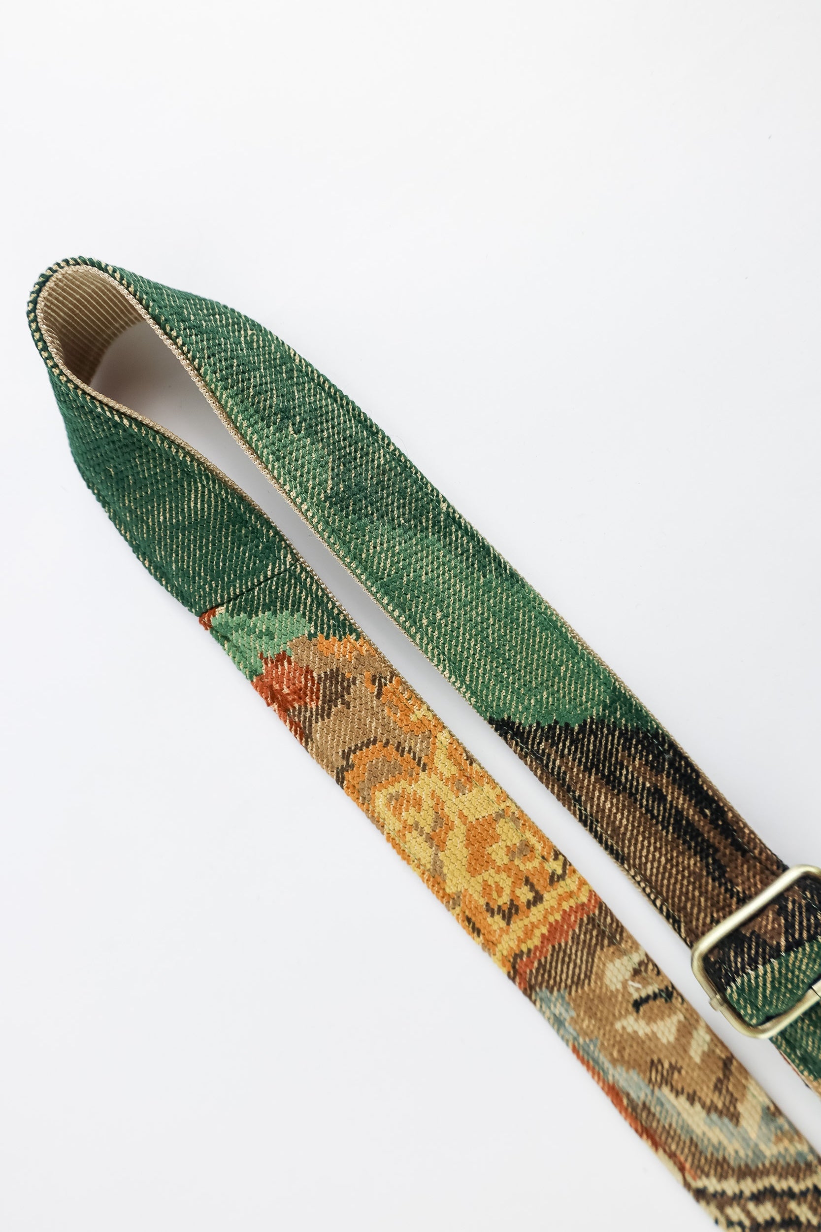 Deze strap is gemaakt van een prachtig kleurrijk geborduurd schilderij, en dit kunstwerk is prachtig terug te zien in de hele strap. Of je nu je tas, telefoon of camera wilt verfraaien, deze strap biedt een ideale combinatie van stijl en functionaliteit. Dankzij het gebruik van hergebruikte materialen is de strap niet alleen duurzaam, maar ook een unieke en karaktervolle toevoeging aan je accessoires. Geef je items een persoonlijke, kunstzinnige charme met dit bijzondere en stijlvolle accessoire.