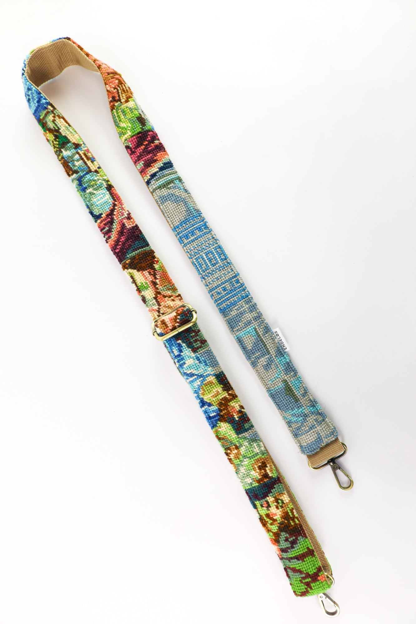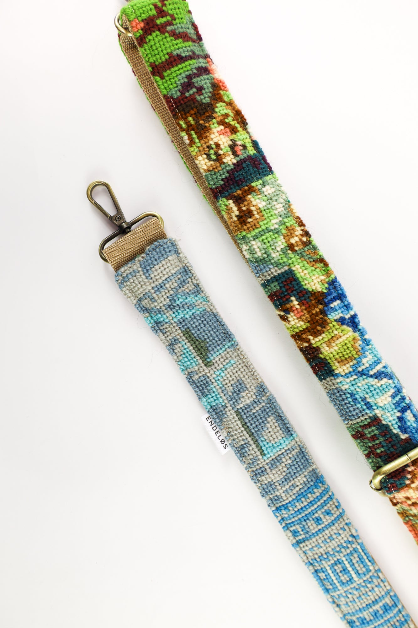 Deze strap is gemaakt van een prachtig kleurrijk geborduurd schilderij, en dit kunstwerk is prachtig terug te zien in de hele strap. Of je nu je tas, telefoon of camera wilt verfraaien, deze strap biedt een ideale combinatie van stijl en functionaliteit. Dankzij het gebruik van hergebruikte materialen is de strap niet alleen duurzaam, maar ook een unieke en karaktervolle toevoeging aan je accessoires. Geef je items een persoonlijke, kunstzinnige charme met dit bijzondere en stijlvolle accessoire.