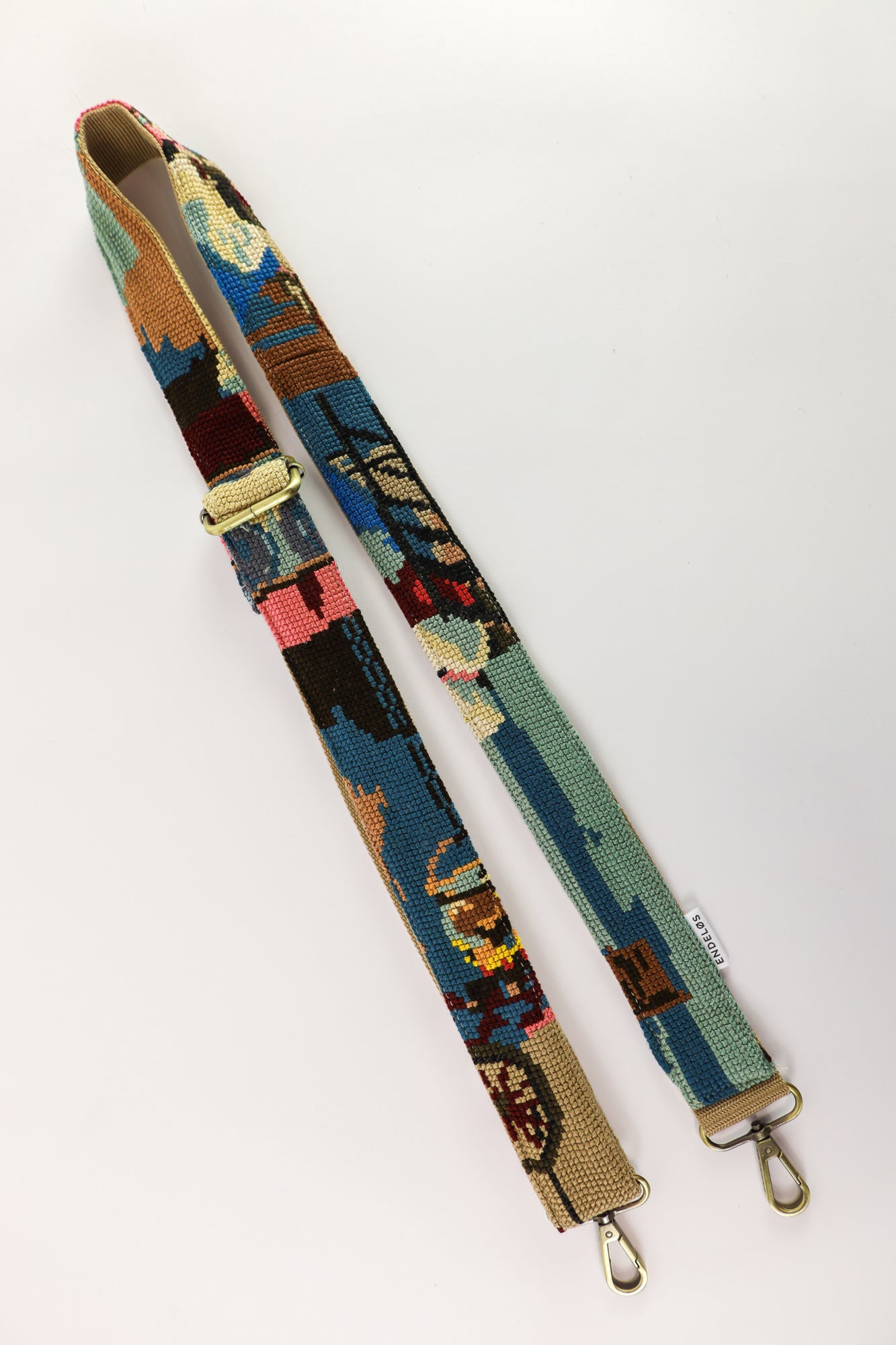 Deze strap is gemaakt van een prachtig kleurrijk geborduurd schilderij, en dit kunstwerk is prachtig terug te zien in de hele strap. Of je nu je tas, telefoon of camera wilt verfraaien, deze strap biedt een ideale combinatie van stijl en functionaliteit. Dankzij het gebruik van hergebruikte materialen is de strap niet alleen duurzaam, maar ook een unieke en karaktervolle toevoeging aan je accessoires. Geef je items een persoonlijke, kunstzinnige charme met dit bijzondere en stijlvolle accessoire.
