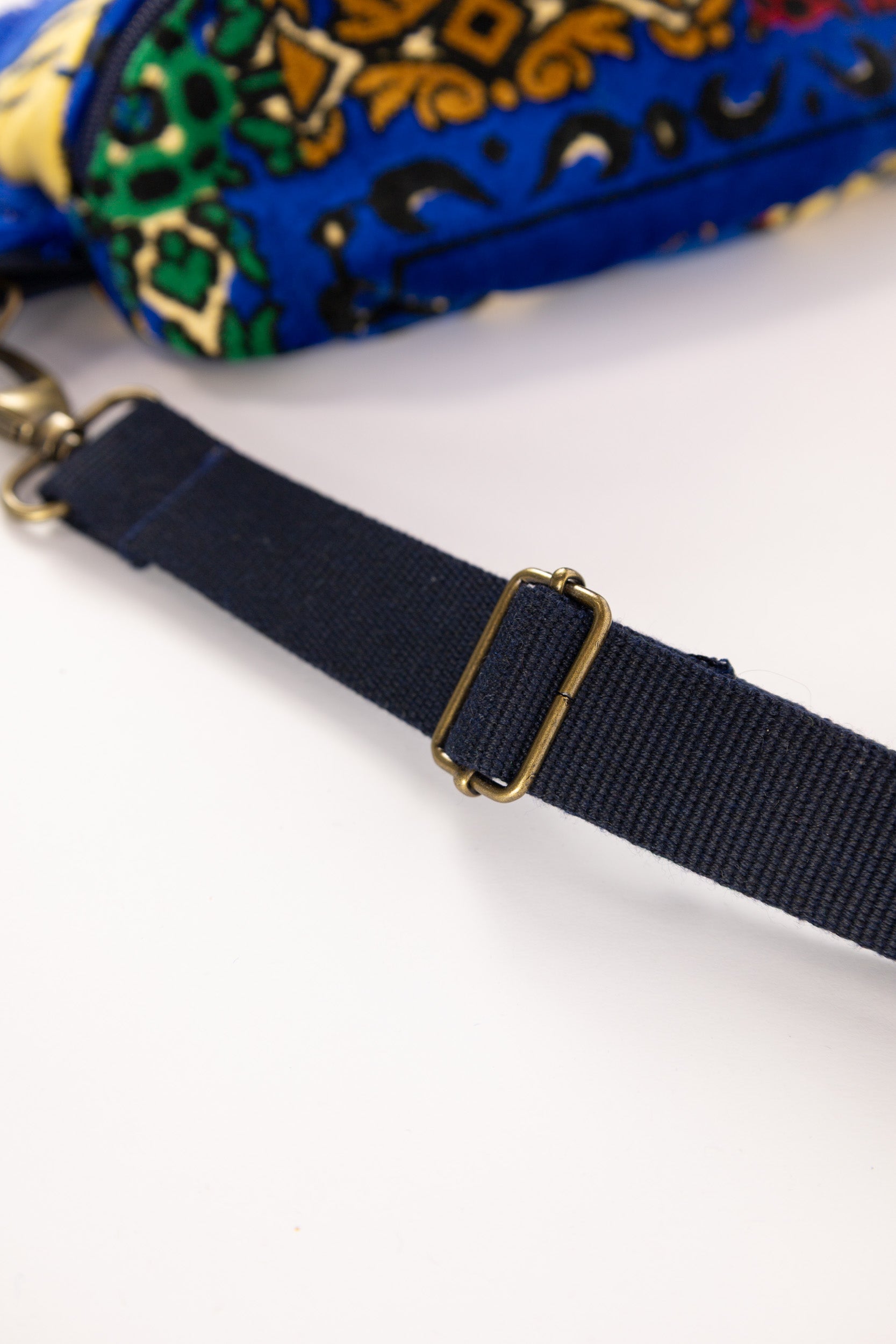 Dankzij de verstelbare band met gesp kun je deze vintage tapijt fannypack op verschillende manieren dragen: crossbody, rond je middel of over de schouder. Zo pas je haar moeiteloos aan je outfit en draagmoment aan — van festival tot dagelijks gebruik.